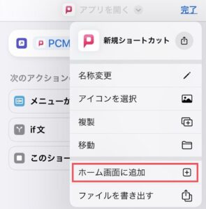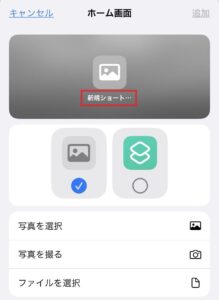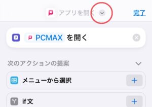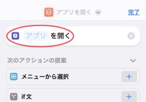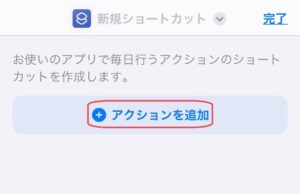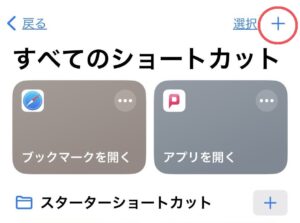 ・『ショートカットアプリ』の右上にある「+」をタップして、新規アクション作成画面を開きます。